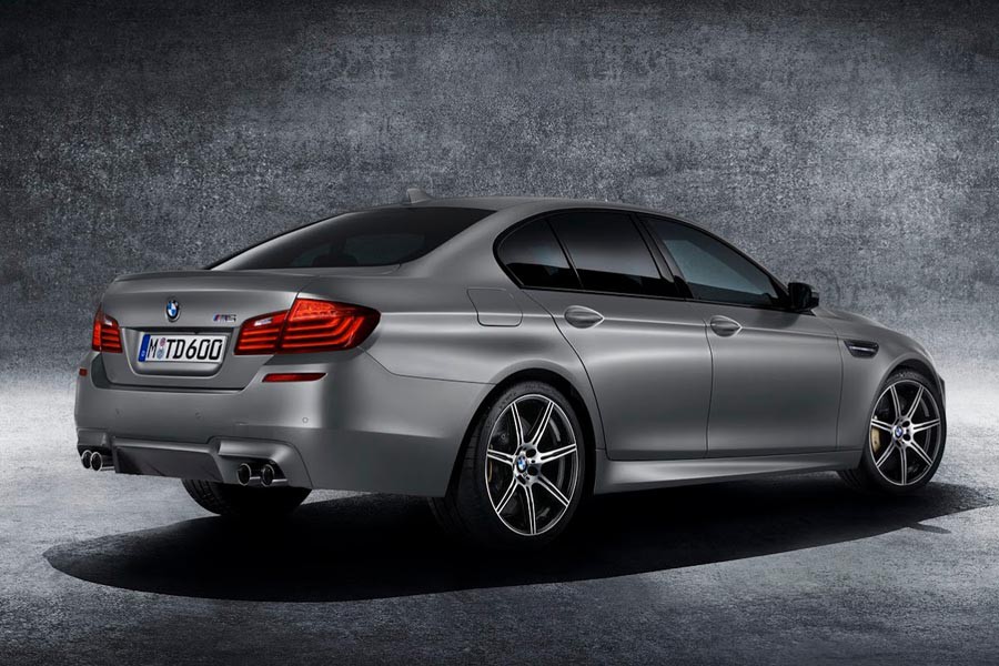 Η BMW γιορτάζει την επέτειο των 30 ετών της M5 με το λανσάρισμα της νέας έκδοσης περιορισμένης παραγωγής «30 Jahre M5» (30 years of the M5), η οποία φέρει μηχανικές και αισθητικές αναβαθμίσεις. Οι 300 επετειακές M5 που θα διατεθούν προς πώληση εφοδιάζονται με τον 4.4 λίτρων V8 κινητήρα με M TwinPower Turbo τεχνολογία, απόδοσης 600 ίππων (+40 PS) και 700 Nm ροπής από τις 1.500 σ.α.λ. (+20 Nm). Οι επιδόσεις είναι φυσικά εντυπωσιακές, αφού το «κτήνος» των 4,9 μέτρων μήκους και 1.870 κιλών βάρους επιταχύνει στο 0-100 χλμ./ώρα σε μόλις 3,9 δευτερόλεπτα (έναντι 4,4 δλ.) και η τελική του ταχύτητα φτάνει τα 305 χλμ./ώρα με το προαιρετικό M Driver’s Package. Όσο για τη μεικτή κατανάλωση και τις εκπομπές CO2 ανέρχονται στα 13,9 λτ./100 χλμ. και 231 γρ./χλμ. αντίστοιχα.