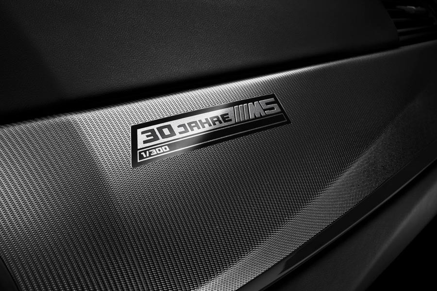 Τον ξεχωριστό χαρακτήρα της επετειακής BMW M5 ενισχύουν και ορισμένες αισθητικές λεπτομέρειες τόσο στο αμάξωμα όσο και στο εσωτερικό. Εξωτερικά κυριαρχεί το μεταλλικό χρώμα Frozen Dark Silver, τα λογότυπα «30 Jahre M5» στα εμπρός φτερά, οι επενδύσεις στις χειρολαβές και οι απολήξεις των εξατμίσεων σε μαύρο χρώμιο και οι ζάντες των 20 ιντσών με ελαστικά 265/35 εμπρός και 295/30 πίσω. Στο εσωτερικό υπάρχουν λογότυπα «30 Jahre M5», αριθμημένη πλακέτα παραγωγής «1/300» και σπορ καθίσματα με επένδυση αλκαντάρα/δέρματος.
