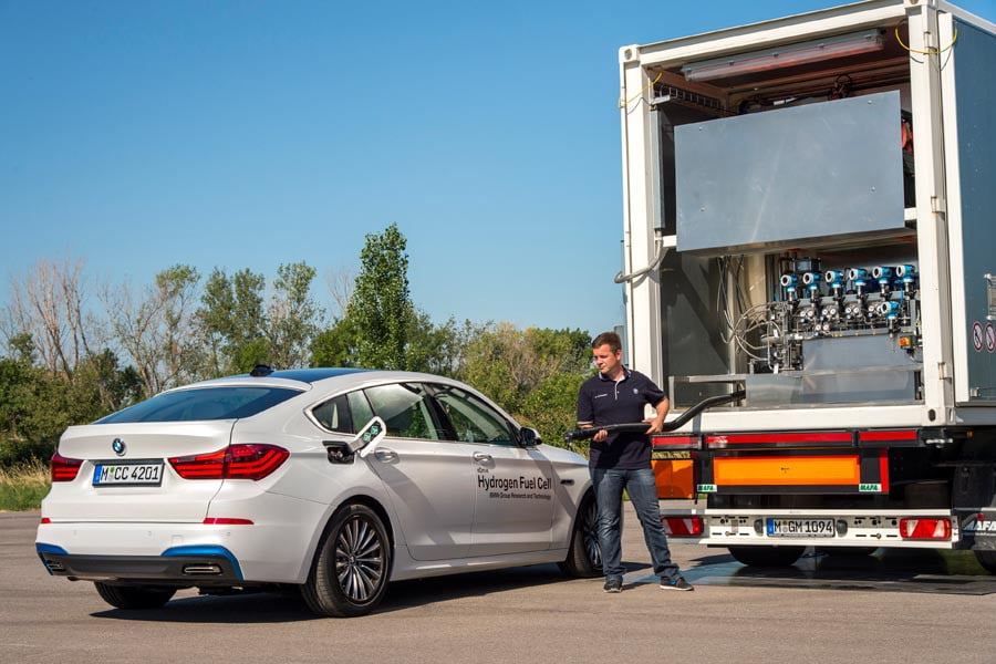 Ξεκινώντας από την χρήση υδρογόνου ως καύσιμο, δεν είναι κάτι νέο για τη BMW, αφού κάνει έρευνες εδώ και 30 χρόνια, ενώ το 2006 είχε παρουσιάσει το πρώτο σεντάν πολυτελείας, τη BMW Hydrogen 7. Τώρα εφαρμόζει τις κυψέλες υδρογόνου σε μια BMW Σειρά 5 Gran Turismo για τις δοκιμές, στην οποία ο ηλεκτροκινητήρας αποδίδει 245 ίππους. Η αποθήκευση του υδρογόνου γίνεται σε μια μακρόστενη κυλινδρική δεξαμενή που είναι τοποθετημένη μεταξύ του εμπρός και πίσω άξονα και αποθηκεύει το υδρογόνο σε πιέσεις των 350 bar. Η αυτονομία που εξασφαλίζει φτάνει τα 500 χιλιόμετρα, ενώ οι κυψέλες καυσίμου και τα βοηθητικά συστήματα έχουν εξελιχθεί από την συνεργασία της με την Toyota.