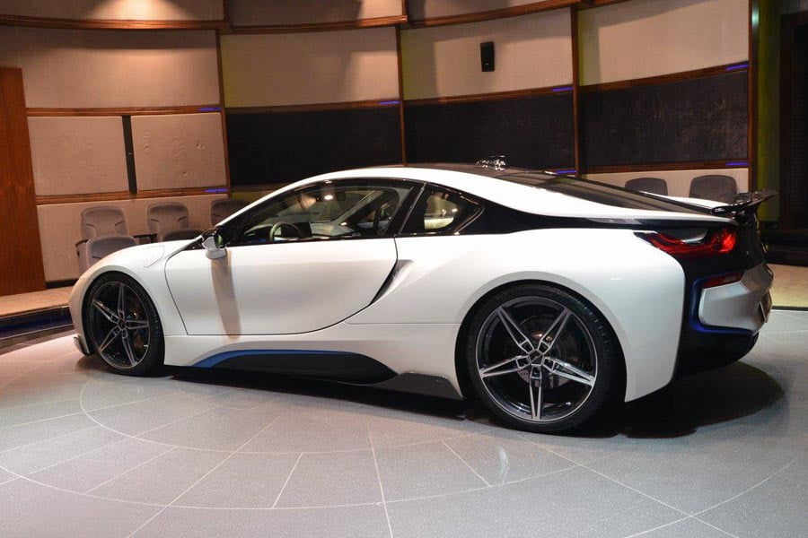Η BMW Abu Dhabi Motors, που έχει παρουσιάσει στο παρελθόν διάφορες αναβαθμισμένες BMW M3 και BMW M4 κυρίως, αυτή τη φορά ετοίμασε για κάποιον πελάτη της, ένα BMW i8 με κάποιες έξτρα «πινελιές». Οι προσθήκες προέρχονται από την AC Schitzer και αφορούν το αεροδυναμικό πακέτο από ανθρακόνημα. Τα μέρη του αποτελούνται από το εμπρός σπόιλερ, τις προσθήκες στα μασπιέ, την πίσω αεροτομή και τις 21 ιντσών ζάντες αλουμινίου, οι οποίες ζυγίζουν 4,4 κιλά λιγότερα από τις εργοστασιακές.