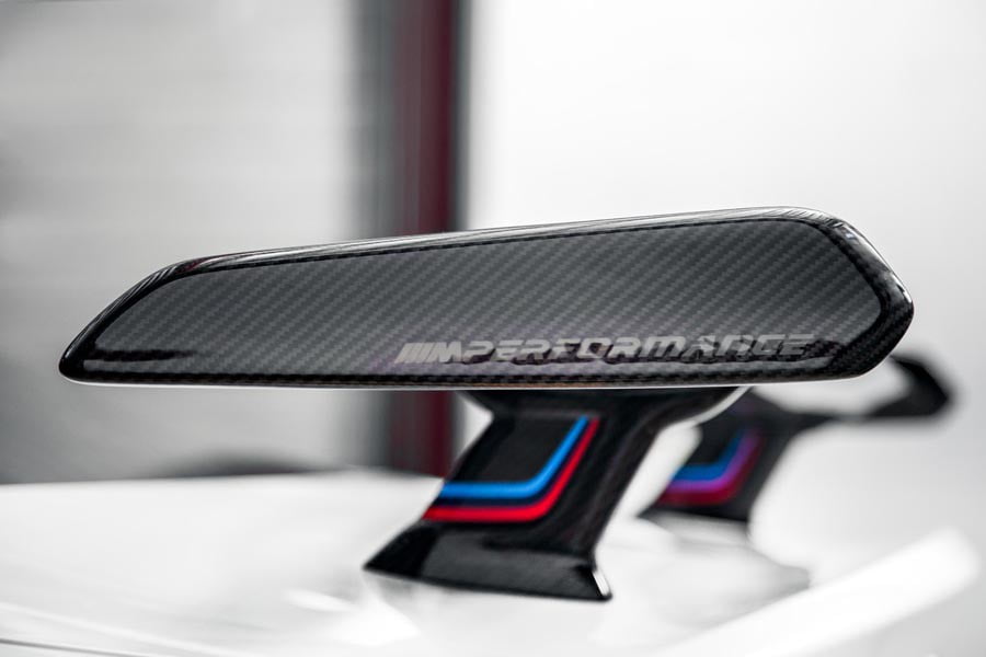 Η BMW M4 CS εξοπλίζεται ακόμα με κεραμικά δισκόφρενα, ρυθμιζόμενη ανάρτηση, νέα καθίσματα τύπου μπακετ και με αριθμημένη πλακέτα στην κονσόλα.