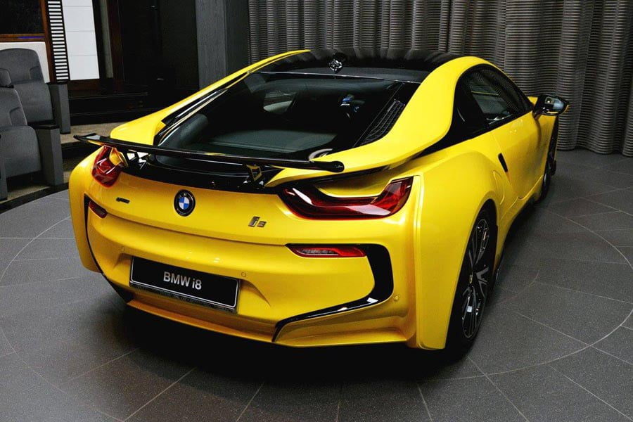 Η BMM Abu Dhabi Motors παρουσιάζει ένα ακόμα μοναδικό μοντέλο το οποίο είναι διαθέσιμο μόνο εκεί, το εικονιζόμενο κατακίτρινο i8 με μαύρες λεπτομέρειες και κάποιες επιπλέον προσθήκες από την AC Schnitzer, που τονίζουν ακόμα πιο πολύ τον έντονο δυναμισμό του αυτοκινήτου.