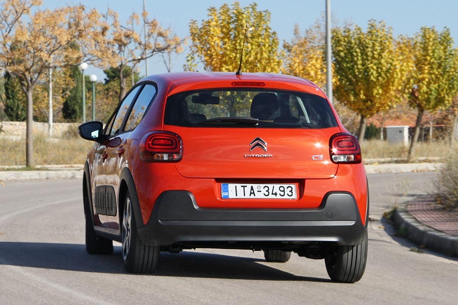 Δε χρειάζεται να κάνεις πολλά χιλιόμετρα με το νέο Citroen C3 για να καταλάβεις πως οι Γάλλοι μηχανικοί έδωσαν προτεραιότητα στην άνεση όταν ρύθμιζαν την ανάρτηση. Η απόσβεση των ανωμαλιών του δρόμου είναι παραπάνω από καλή και χτυπάει κορυφή στην κατηγορία, ενώ και η ποιότητα κύλισης είναι στο άνω μέρος της κατηγορίας. Το τίμημα όμως είναι η ενδοτικότητά της ανάρτησης, καθώς επιτρέπει κλίσεις στο αμάξωμα, που μπορεί να μην επηρεάζουν το πολύ καλό κράτημα, σίγουρα όμως θέτουν τα όρια στον οδηγό. Στην εθνική οδό το αυτοκίνητο προσδίδει σιγουριά στον οδηγό του, ενώ οι επιβάτες θα εκτιμήσουν την προσεγμένη ηχομόνωση. Το πεντάρι κιβώτιο ταχυτήτων είναι καλά κλιμακωμένο (130 χλμ./ώρα με 5η ταχύτητα στις 3.700 σ.α.λ.) δεν διακρίνεται όμως για την αίσθηση του επιλογέα του κατά τις αλλαγές, αφού οι διαδρομές είναι σχετικά μεγάλες και το κούμπωμα των σχέσεων δεν είναι αβίαστο (το γράφουμε με επιφύλαξη καθώς το αυτοκίνητο που είχαμε στη διάθεσή μας είχε μόλις 2 χλμ. όταν το παραλάβαμε). Τα φρένα του C3 είναι ισχυρά και το πεντάλ τους προοδευτικό. Το τιμόνι είναι καλό σε απόκριση και κόβει αρκετά, χαρίζοντας κύκλο στροφής μεταξύ πεζοδρομίων στα 10,7 μέτρα. Η θέση οδήγησης είναι άνετη, χάρη στο μαλακό κάθισμα, ενώ η περιμετρική ορατότητα είναι σε πολύ καλό επίπεδο και δεν θα προβληματίσει τον οδηγό ακόμη και σε δύσκολες μανούβρες.