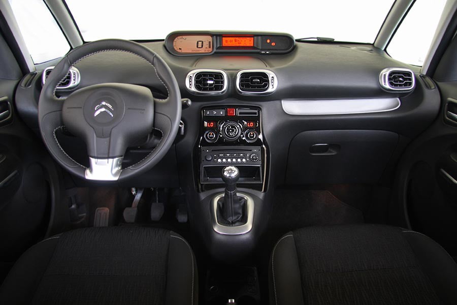 Στην καμπίνα του C3 Picasso υπάρχουν όλα όσα περιμένει κανείς εξ αρχής να συναντήσει αλλά και ακόμα περισσότερα. Στο ταμπλό, η γνωστή προσεγμένη ποιότητα υλικών της Citroen δίνει αισθητά το παρόν. Επιπλέον, η σχεδίαση είναι ιδιαίτερα ευχάριστη, ενώ όσον αφορά την εργονομία υπάρχουν κάποια ατοπήματα, όπως είναι ο μακριά τοποθετημένος -από το οπτικό πεδίο του οδηγού- πίνακας οργάνων και το πολύ χαμηλά τοποθετημένο ηχοσύστημα που βρίσκεται κάτω από τα χειριστήρια του air condition.