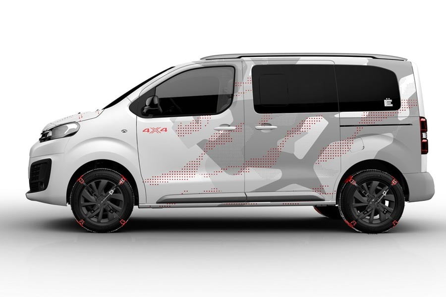 Εκτός λοιπόν από τα… γραφικά στο αμάξωμά του έχει να επιδείξει ράγες οροφής και κυρίως, αυξημένη απόσταση από το έδαφος κατά 60 χλστ. Η πλευρική συρόμενη πόρτα του ανοίγει ηλεκτρικά, αποκαλύπτοντας ένα ευρύχωρο εσωτερικό στο οποίο μπορούν να φιλοξενηθούν έως και εννέα άτομα.