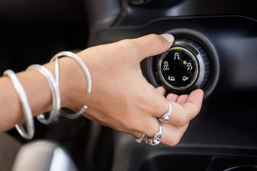 Το περιστροφικό χειριστήριο του Grip Control βρίσκεται στη βάση της κεντρικής κονσόλας και περιλαμβάνει τις επιλογές Standard, Sand, Off-Road, Snowκαι ESP Off. Να υπενθυμίσουμε ότι δεν πρόκειται για τετρακίνηση, αλλά για σύστημα που συνεργάζεται με το ESP και διαχειρίζεται με διαφορετικό τρόπο την ελκτική πρόσφυση των εμπρός κινητήριων τροχών.