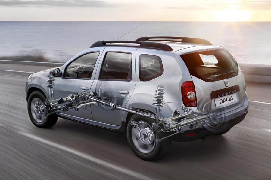 Η τετρακίνηση του Dacia Duster 1.5 dCi 4×4 προέρχεται από τη Nissan, το μεγάλο συνεργάτη της Renault, και μας είναι γνωστή από το Qashqai. Αποτελείται από έναν ηλεκτρομαγνητικό συμπλέκτη πριν από το πίσω διαφορικό, ο οποίος μοιράζει τη ροπή στους δύο άξονες του αυτοκινήτου. Η εμπλοκή της γίνεται μέσω ενός περιστροφικού διακόπτη στην κεντρική κονσόλα, ενώ ο οδηγός μπορεί να επιλέξει είτε την πιο οικονομική κίνηση στους 2 τροχούς, είτε το κλείδωμα του ποσοστού της ροπής που θα μοιραστεί στους δύο άξονες, σχεδόν στο 50:50. Στην πράξη τώρα, το Duster εκτός δρόμου αποδεικνύεται εξαιρετικά ικανό και άνετο, διαθέτοντας την ικανότητα να ξεπερνά με ευκολία νεροφαγώματα, λακκούβες και χαντάκια. Επίσης, η άμεση εμπλοκή της τετρακίνησης και η δυνατότητα κλειδώματος της ροπής, προσφέρουν περισσότερη ασφάλεια κατά την κίνηση σε λασπωμένα εδάφη. Στην άσφαλτο τώρα, το πετρελαιοκίνητο Duster ξεχωρίζει για τη σταθερότητά του στην ευθεία και διατηρεί την πορεία του στις στροφές, με τις κλίσεις από το αμάξωμα να μην είναι πολύ μεγάλες. Το τιμόνι, εκτός δρόμου αποδεικνύεται όσο ελαφρύ απαιτείται, στις στροφές ωστόσο χάνει σε αίσθηση και δεν παρέχει τόσο καλή πληροφόρηση.