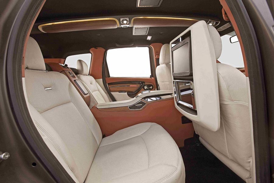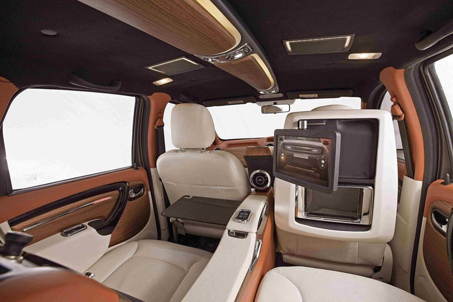 Αντίθετα με το «μαχητική» εξωτερική του εμφάνιση, στο εσωτερικό επικρατεί η πολυτέλεια, σε σημείο που ξεπερνά την υπερβολή και μάλλον είναι στα όρια του «κιτς». Ξύλο και δέρμα σε εκκεντρικούς χρωματισμούς είναι σε αφθονία, ενώ οι πίσω V.I.P. φιλοξενούμενοι νιώθουν κυριολεκτικά σαν να κάθονται στο σαλόνι του σπιτιού τους, έχοντας στη διάθεσή τους δύο ανεξάρτητα δερμάτινα καθίσματα – πολυθρόνες, τραπεζάκια, οθόνες κ.λπ. Η DC-Design χρεώνει ολόκληρο το πακέτο στα 4.940 ευρώ, τα οποία μπορεί να μην φαίνονται υπερβολικά πολλά, ωστόσο είναι κάτι περισσότερο από τα μισά χρήματα που κοστίζει το Dacia Duster στην Ινδία.