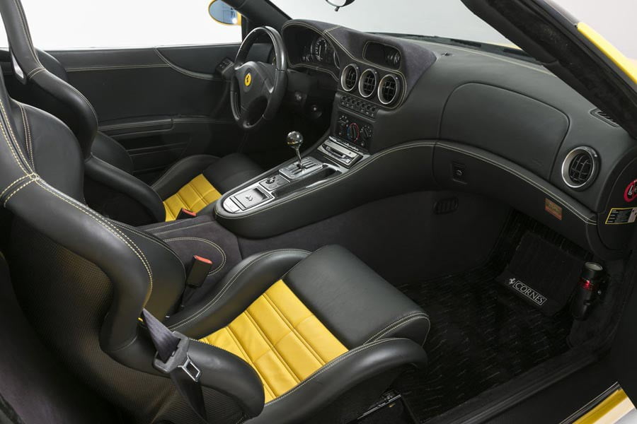 Η κίτρινη Ferrari 550 Barchetta Pininfarina είναι μοντέλο του 2001 και έχει διανύσει μόλις 2.616 χλμ., ενώ πωλείται στην τιμή των 395.000 λιρών Αγγλίας (470.830 ευρώ). Συνολικά μόλις 448 τέτοια μοντέλα κατασκευάστηκαν από το 2000 έως το Δεκέμβριο του 2001. Ο τοποθετημένος εμπρός V12 κινητήρας των 5.5 λτ. έχει απόδοση 485 ίππων και 569 Nm ροπής, επιταχύνοντας το αμάξωμα των 1.690 κιλών από 0-100 χλμ./ώρα σε 4,4 δλ. και με την τελική ταχύτητα να αγγίζει τα 300 χλμ./ώρα.