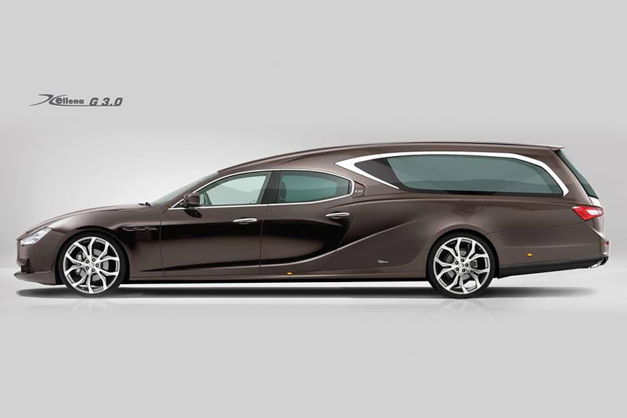 Μια ξεχωριστή πρόταση στα πιο “αντιπαθή” αυτά οχήματα, έρχεται να δώσει η ιταλική εταιρεία Ellena η οποία ειδικεύεται στις μετασκευές οχημάτων σε νεκροφόρες, με το μοντέλο Maserati G3.0, χρησιμοποιώντας ως βάση τη Maserati Ghibli. Μάλιστα έχει διατηρήσει και το πίσω μέρος της καμπίνας, όμως από εκεί και πίσω είναι τελείως διαφορετική και κατασκευασμένη από φάιμπεργκλας. Όχι πως και αυτή η νεκροφόρα έχει κάποια κομψότητα στον σχεδιασμό της, αλλά σίγουρα ξεφεύγει από τις συνηθισμένες προτάσεις και θα μπορούσε να χαρακτηριστεί ως η πιο… σπορ.