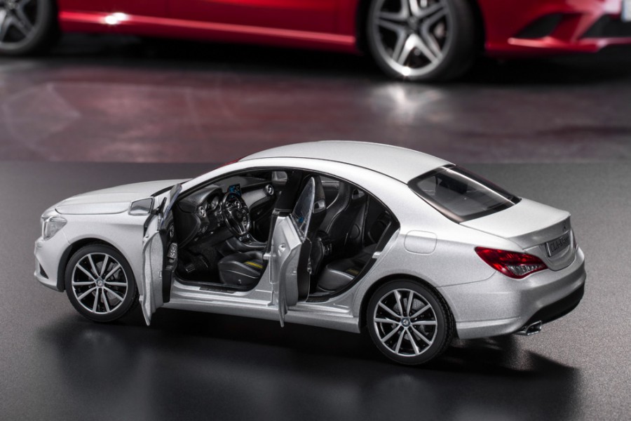 Για όσους επιθυμούν να κάνουν δική τους τη δυναμική Mercedes CLA και τους λείπουν τα 28.900 ευρώ, που κοστίζει η αρχική έκδοση μπορούν την αποκτήσουν υπό κλίμακα 1:43 με κάτι λιγότερο από 30 ευρώ. Η έκδοση αυτή αποτελείται από 50 επιμέρους τμήματα, έχει μεταλλικό αμάξωμα σε τρία χρώματα (μαύρο, γκρι, μπλε), ενώ το εσωτερικό είναι ακριβές αντίγραφο της πραγματικής CLA.