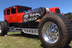 Έχουμε δει κατά καιρούς διάφορες ιδιωτικές κατασκευές αυτοκινήτων, οι οποίες συνήθως προσπαθούν να αντιγράψουν supercars αλλά αυτό το… θηρίο ξεφεύγει από κάθε προηγούμενο! Στο πλαίσιό του από φορτηγό έχει ενσωματωθεί το αμάξωμα του μοντέλου 1928 Studebaker (το τελευταίο μοντέλο της Αμερικάνικης αυτής φίρμας παράχθηκε στο 1966), ενώ στο εμπρός τμήμα έχει τοποθετηθεί ένας V12 κινητήρας χωρητικότητας 29 λίτρων από άρμα μάχης (!) απόδοσης 1.400 ίππων και με σίγουρα πολύ, μα πολύ ροπή, όπως αναφέρει ο κάτοχος του… αυτοκινήτου. Φυσικά στον Rodzilla έχουν γίνει όλες οι απαραίτητες ενισχύσεις σε πλαίσιο και ανάρτηση, τα φρένα είναι ειδικά σχεδιασμένα, όπως και τα λάστιχα που «φοράει».