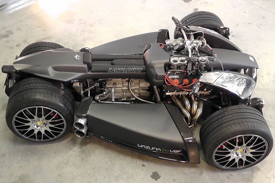 Το Wazuma V8F της γαλλικής εταιρείας Lazareth είναι ένα τετράτροχο όχημα, το οποίο αν και μοιάζει με «γουρούνα» είναι σχεδιασμένο σαν 3τροχο, καθώς οι δύο πίσω τροχοί είναι σχεδόν ενωμένοι. Η Wazuma V8F όπως υποδηλώνει και η ονομασία της εφοδιάζεται με V8 κινητήρα 3.0 λίτρων από Ferrari απόδοσης 250 ίππων, ενώ συνδυάζεται με 6τάχυτο σειριακό κιβώτιο από BMW M3! Ο χειρισμός όμως των ταχυτήτων γίνεται μέσω δύο κουμπιών που βρίσκονται στο τιμόνι.