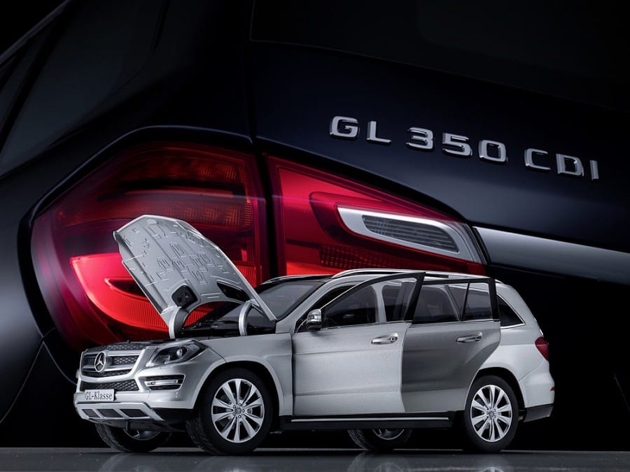 Για όσους θέλουν να αποκτήσουν μια Mercedes και ειδικότερα το μεγαλοπρεπές SUV της φίρμας GL-Class, μπορούν να δώσουν από 30 ευρώ και να πάρουν πίσω ρέστα. Φυσικά αναφερόμαστε σε μοντέλο υπό κλίμακα 1:18 (μήκους 28,5 εκ.), το οποίο αποτελεί ακριβές αντίγραφο της πραγματικής GL-Class. Το εμπρός και πίσω καπό και οι πόρτες ανοίγουν, τα καθίσματα της 2ης και 3ης σειράς αναδιπλώνονται, ενώ το εσωτερικό αποτελεί πιστό αντίγραφο του πραγματικού αυτοκινήτου. Ο εξοπλισμός της μινιατούρας περιλαμβάνει πανοραμική οροφή, φωτιστικά σώματα με LED, ζάντες αλουμινίου κ.α., με την τιμή του να ανεβαίνει στα 69,90 ευρώ (τιμές Γερμανίας). Παράλληλα διατίθεται και σε κλίμακα 1:43 (μήκους σχεδόν 12 εκ.), στην τιμή των 29,90 ευρώ.