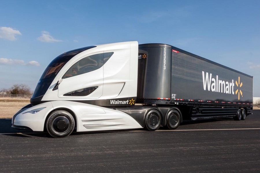 Η Walmart, η οποία είναι μια αμερικάνικη πολυεθνική εταιρεία λιανικής πώλησης παρουσιάζει τον τράκτορα του μέλλοντος, τον οποίο έχει εξελίξει σε συνεργασία με προμηθευτές της και το αποτέλεσμα είναι αρκετά φουτουριστικό. Στον ιδιαίτερα αεροδυναμικό τράκτορα ο οδηγός κάθεται στο κέντρο, το τιμόνι είναι κάθετα τοποθετημένο και έχει μικρή διάμετρο όπως ενός αυτοκινήτου, ενώ ο έλεγχος όλων των λειτουργιών γίνονται μέσω δύο οθονών. Για την κίνηση του φουτουριστικού τράκτορα υπάρχει υβριδικό μηχανικό σύνολο για χαμηλότερη κατανάλωση καυσίμου και μειωμένες εκπομπές CO2. Ένα ακόμα εντυπωσιακό του στοιχείο αποτελεί το τρέιλερ μήκους 16 μέτρων, το οποίο είναι κατασκευασμένο εξολοκλήρου από ανθρακόνημα και εξοικονομεί πάνω από 1.800 κιλά βάρους από ένα συμβατικό.