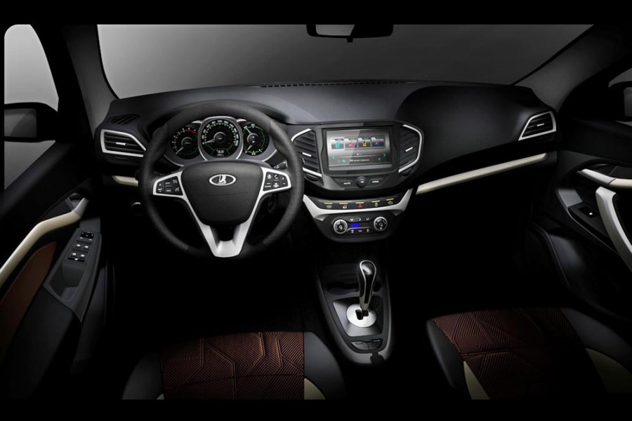 Με την πρώτη ματιά θυμίζει εσωτερικό κορεάτικου μοντέλου κυρίως από την σχεδίαση του τιμονιού και ίσως του ταμπλό, αλλά δεν είναι αυτό που νομίζετε και αποτελεί μάλλον έκπληξη. Το εσωτερικό που βλέπετε λοιπόν προέρχεται από το νέο Lada Vesta, το οποίο θα κάνει πρεμιέρα στην Έκθεση Αυτοκινήτου της Μόσχας τον Αύγουστο και αποτελεί αναμφίβολα σχεδιαστικό και τεχνολογικό άλμα για την Ρώσικη εταιρία. Σχεδιαστικό γιατί είναι ότι πιο μοντέρνο έχει ποτέ παρουσιάσει και τεχνολογικό γιατί για πρώτη φορά Lada θα εφοδιάζεται με οθόνη αφής, αλλά και με αυτόματο κλιματισμό.