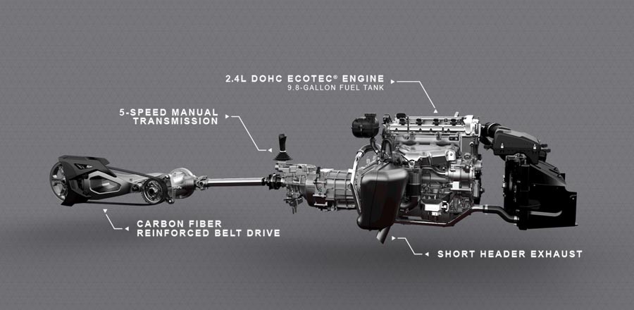 Το Polaris Slingshot τροφοδοτείται με 2.4 λτ. Ecotec κινητήρα απόδοσης 173 ίππων και 225 Nm ροπής, συνδυασμένο με 5τάχυτο μηχανικό κιβώτιο, ισχύς που είναι αρκετή για να κινήσει σε γρήγορους ρυθμούς το ελαφρύ όχημα των 755 κιλών. Δεν γνωρίζουμε και αναρωτιόμαστε γιατί δεν επιλέχθηκε ένας μικρότερος και ελαφρύτερος κινητήρας αντίστοιχης ισχύος. Η κίνηση μεταδίδεται μέσω ιμάντα ενισχυμένου με ανθρακόνημα στον πίσω τροχό, ωστόσο επιδόσεις δεν ανακοινώνονται αν και με αναλογία 4,36 κιλών/ίππο πιστεύουμε ότι θα επιταχύνει αρκετά γρήγορα.
