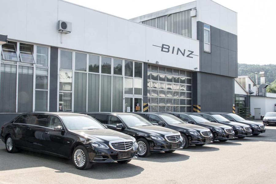 Η Γερμανική εταιρεία διασκευής αυτοκινήτων Binz παρουσιάζει τη νέα «ειδική» πρόταση με βάση την ανανεωμένη Mercedes E-Class, με τη διαφορά ότι διαθέτει δύο ακόμα πόρτες και θέσεις. Το εμπρός και πίσω τμήμα του αμαξώματός της είναι όπως το γνωρίζουμε, ωστόσο το μεταξόνιο έχει μεγαλώσει κατά 1.110 χιλιοστά στα 3.985 χλστ. (όσο το μήκος ενός μικρού αυτοκινήτου), ενώ αντίστοιχα και το μήκος έχει μεγαλώσει στα 5.979 χλστ.