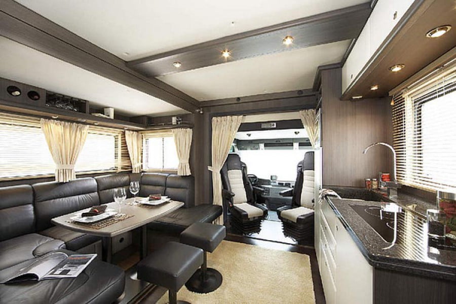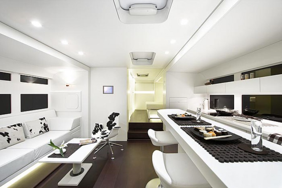 Εκτός από επιβάτες μπορούν να μεταφέρουν και ένα μικρό αυτοκίνητο τύπου smart fortwo, Audi A1, MINI 3d. Το υπερπολυτελές εσωτερικό τους δεν έχει να ζηλέψει απολύτως τίποτα από εκείνο ενός σύγχρονου και πλήρους εξοπλισμένου σπιτιού, αφού μπορεί να εξοπλιστεί με τα πάντα. Περισσότερα στις φωτογραφίες, οι οποίες θα σας αφήσουν με ανοιχτό το στόμα! Όσο για την τιμή ενός τέτοιου τροχόσπιτου, μπορεί να κυμανθεί και να ξεπεράσει τις 600.000 ευρώ.