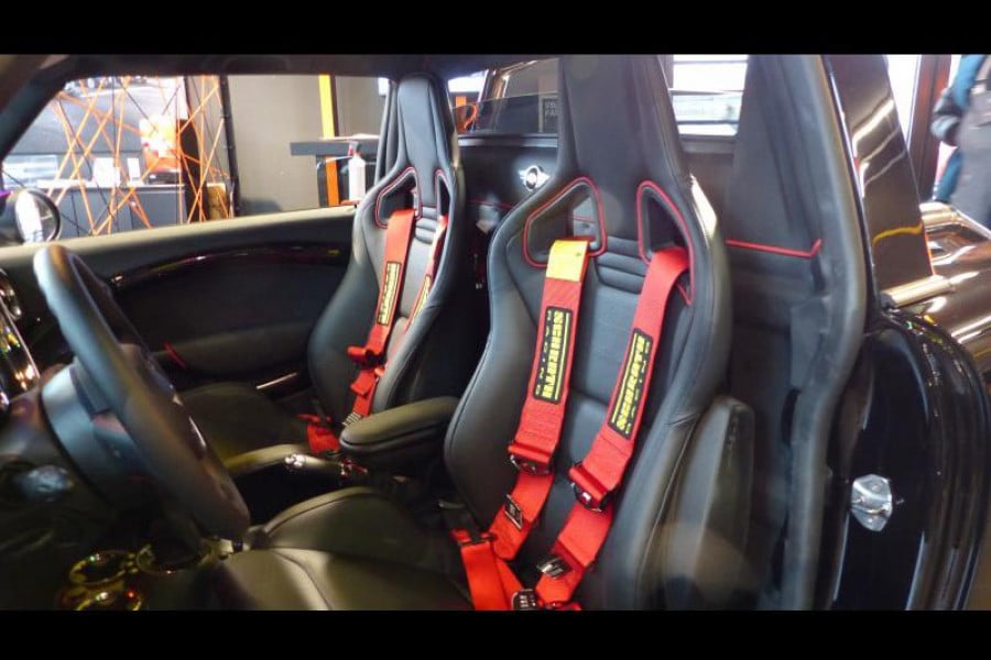 Ο mini χώρος φόρτωσης επενδύθηκε με ξύλο, roll bar και μεταλλική επένδυση στην πόρτα, ενώ τοποθετήθηκε μεταλλικό χώρισμα με παράθυρο μεταξύ καμπίνας και καρότσας. Αφού τελείωσαν όλες οι μηχανικές εργασίες και οι φαναρτζοδουλειές το MINI Cooper S pick-up βάφτηκε σε σκούρο μοβ χρώμα και τοποθετήθηκαν μαύρες ζάντες αλουμινίου με κόκκινους δακτυλίους. Αν αναρωτιέστε σχετικά με το πόσα κιλά μπορεί να σηκώσει ή πόσες μπάλες σανό μπορεί να χωρέσει η καρότσα του δεν το γνωρίζουμε, αλλά μάλλον δύσκολο το βλέπουμε να πατήσει σε κανένα χωράφι.