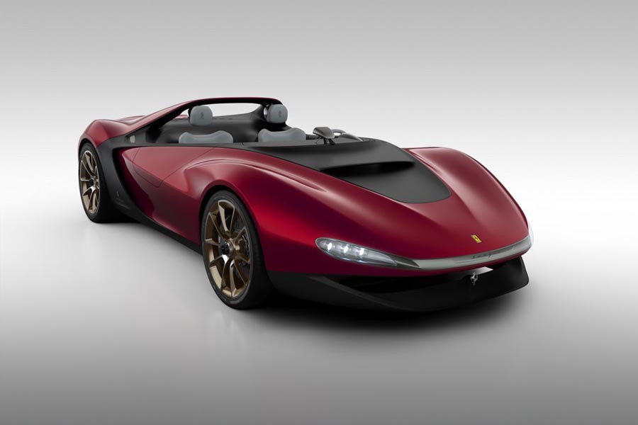 Από το σκίτσο που είχε δημοσιευθεί για το Pininfarina Sergio concept φαινόταν πως το εν λόγω σπορ αυτοκίνητο είχε πολύ «ιδιόρρυθμο» χαρακτήρα, γεγονός που επιβεβαιώνουν και οι επίσημες φωτογραφίες. Χαρακτηριστικό του γνώρισμα είναι έλλειψη παραθύρων και εμπρός παρμπρίζ, αλλά λόγω του ειδικού σχεδιασμού του εμπρόσθιου τμήματος αμαξώματος ο αέρας περνάει πάνω από τα κεφάλια των δύο επιβατών.