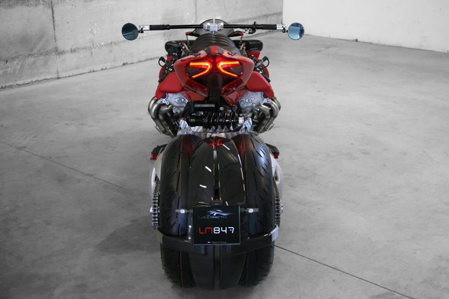 Η Γαλλική εταιρία Lazareth με τα μοναδικά δημιουργήματα που συνδυάζουν χαρακτηριστικά από μοτοσικλέτες και αυτοκίνητα (βλ. γουρούνα Wazuma V8F), παρουσιάζει το νέο απίστευτο μοντέλο LM 847. Η μηχανή αυτή θυμίζει κάτι από Batman και έχει μήκος 2.650 χλστ., πλάτος 900 χλστ., ύψος 1.000 χλστ. και μεταξόνιο 1.850 χλστ., ενώ ζυγίζει 400 κιλά.