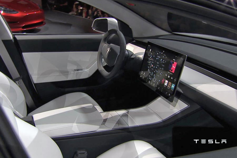 Το εσωτερικό είναι άκρως λιτό σχεδιαστικά, αφού όλες οι λειτουργίες του αυτοκινήτου γίνονται μέσω της τεράστιας οθόνης αφής. Σύμφωνα με τη μάρκα θα προσφέρει παράλληλα μεγαλύτερους χώρους στο εσωτερικό του από οποιοδήποτε άλλο αυτοκίνητο αυτού του μεγέθους με κινητήρα εσωτερικής καύσης.