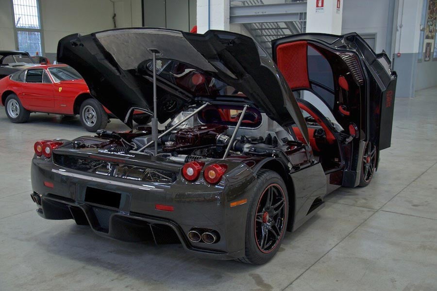 Βαρεθήκατε (τρόπος του λέγειν) να βλέπετε μεταχειρισμένες κόκκινες Ferrari Enzo, όμοιες μεταξύ τους να πωλούνται μερικά εκατομμύρια ευρώ; Ε, λοιπόν η συγκεκριμένη Enzo είναι σίγουρα διαφορετική από τις υπόλοιπες, αφού δεν είναι βαμμένη με κάποιο χρώμα, παρά μόνο με διάφανο βερνίκι, το οποίο αφήνει σε κοινή θέα το εξωτικό ανθρακόνημα σε κάθε επιφάνεια του εντυπωσιακού αμαξώματος.