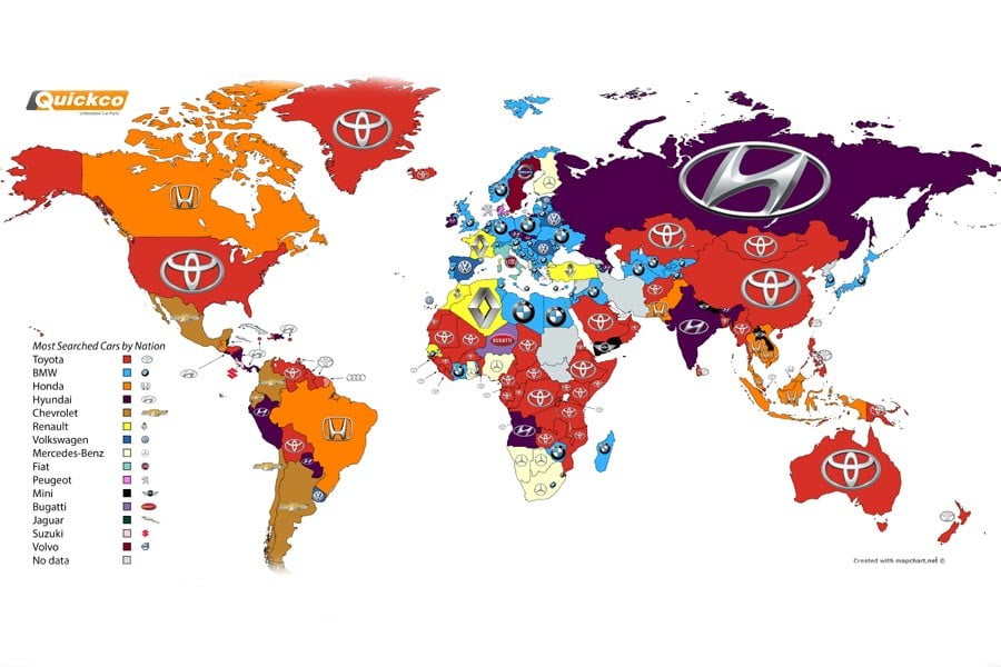 Για όποιον ενδιαφέρεται να δει ποιες μάρκες αυτοκινήτου γκούγκλαρε περισσότερο ο κόσμος σε όλη τη Γη, η βρετανική εταιρεία Quickco έχει την απάντηση, καθώς δημοσίευσε σχετικό, παγκόσμιο χάρτη με τα αποτελέσματα ανά χώρα. Σε αυτόν υπάρχει φυσικά και η χώρα μας!