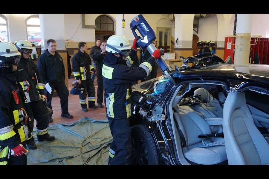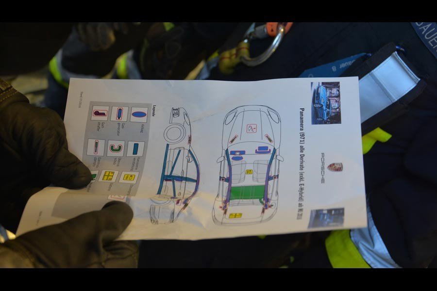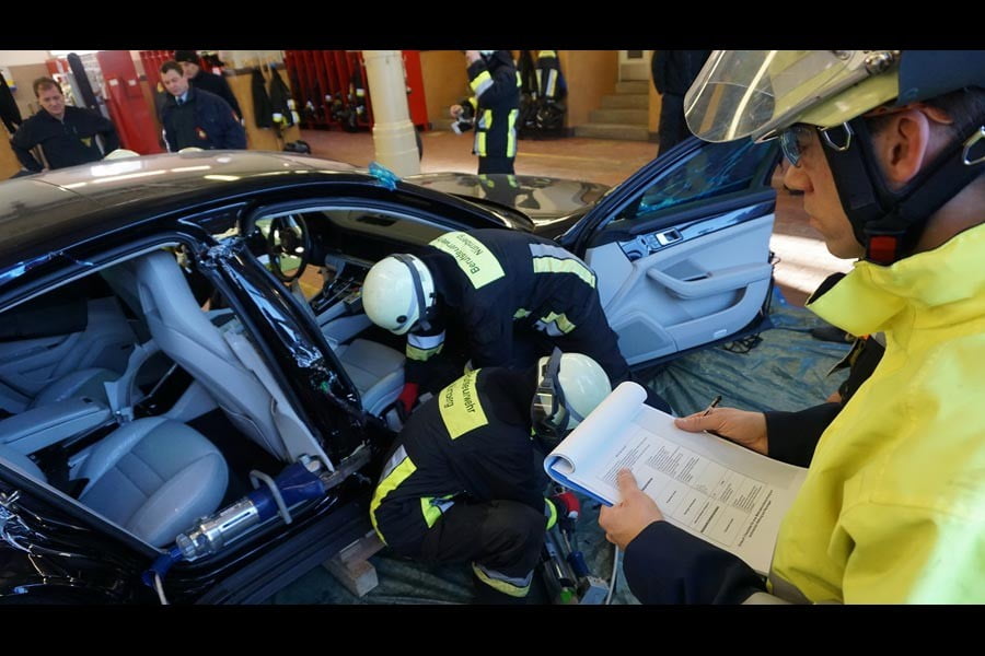 Η πολυτελής Porsche διαμελίστηκε από τους ειδικούς κόφτες των διασωστικών συνεργείων, ενώ οι πυροσβέστες ακολούθησαν τις οδηγίες του εντύπου διάσωσης που έχει φτιάξει η Porsche για τέτοιες περιπτώσεις. Έτσι σε μια ανάλογη πραγματική περίπτωση οι διασώστες θα είναι σε θέση να γνωρίζουν που είναι για παράδειγμα το ρεζερβουάρ ή μπαταρία υψηλής τάσης, προκειμένου να κάνουν ένα ασφαλή και όσο το δυνατό ταχύτερο απεγκλωβισμό των τραυματισμένων επιβατών.