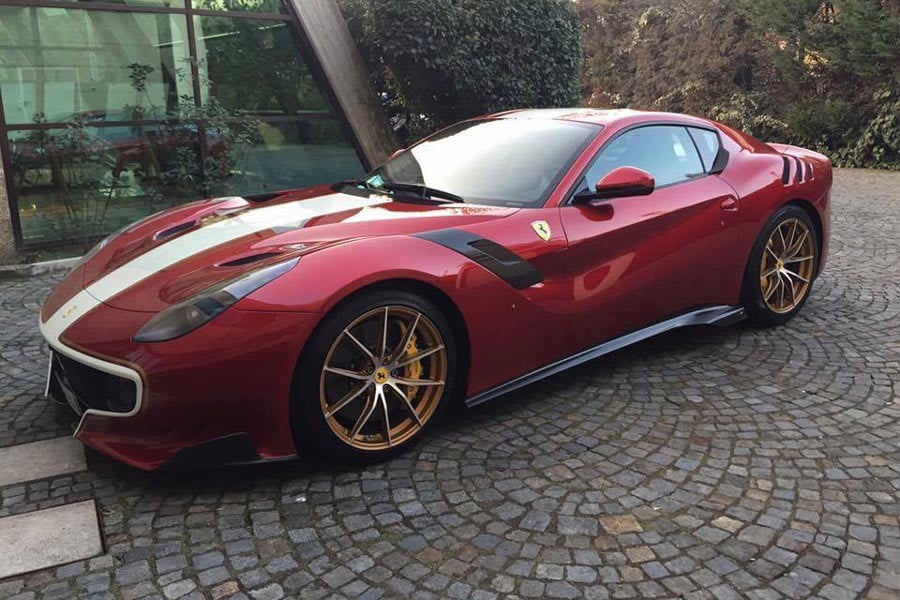 Ο κύριος Pagani διάλεξε την Ferrariτου με κόκκινο αμάξωμα και λευκή ρήγα σε χρυσό περίβλημα. Όσον αφορά το εσωτερικό της, εκεί όπως τουλάχιστον διακρίνουμε από την εικόνα, ο Pagani διάλεξε λευκό και καφέ χρώμα.