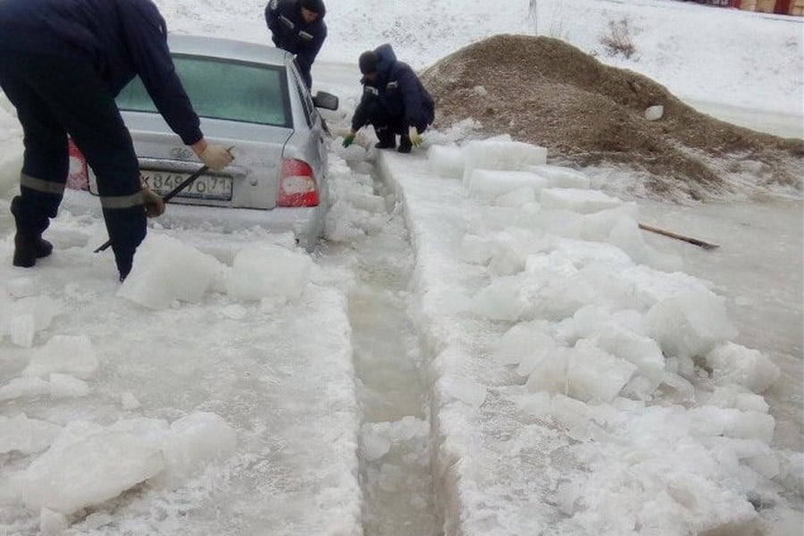 Όπως μεταδίδουν τα Ρώσικα μέσα, η ιδιοκτήτρια του Lada Priora κάλεσε την οδική βοήθεια, η οποία βλέποντας όμως την κατάσταση του αυτοκίνητου, δήλωσε ανήμπορη να κάνει το οτιδήποτε. Τη λύση έδωσαν τελικά οι τοπικές αρχές και πιο συγκεκριμένα, η ειδική μονάδα αντιμετώπισης έκτακτων καταστάσεων που διαθέτει η Ρωσία, τα εκπαιδευμένα μέλη της οποία έκοψαν τον πάγο για να απελευθερώσουν το αυτοκίνητο, που φορτώθηκε στη συνέχεια σε γερανό.