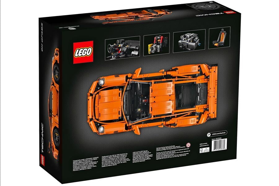 Η Porsche της Lego είναι σε πορτοκαλί χρώμα και διαθέτει ρυθμιζόμενη αεροτομή, κόκκινες αναρτήσεις, ανοιγόμενες πόρτες, λειτουργικό κιβώτιο, τιμόνι και επιλογέα ταχυτήτων, αγωνιστικά καθίσματα, ανοιγόμενο καπό, ειδικό σειριακό αριθμό μέσα στο ντουλαπάκι και λειτουργικό κινητήρα.