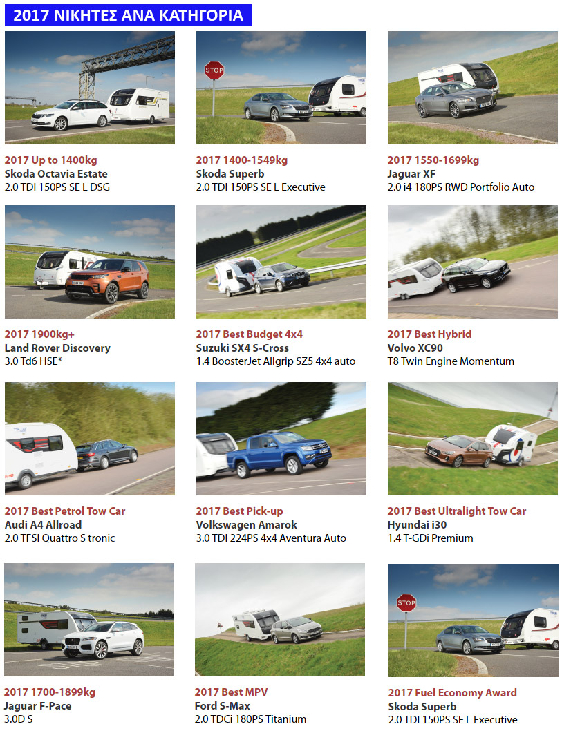 Όπως κάθε χρόνο από το 2007, έτσι και φέτος ανακοινώθηκαν τα αποτελέσματα από τις δοκιμές του Tow Car Awards, που γίνονται στην Αγγλία. Τα τεστ πραγματοποιούνται από ειδικούς των περιοδικών Practical Caravan, What Car? και του The Camping and Caravanning Club, όπου εξετάζονται πολλοί επιμέρους παράγοντες στους τομείς της Ρυμούλκησης, Πρακτικότητας, Οδήγησης σε καθημερινές συνθήκες, Αγοράς – Ιδιοκτησίας και Οικονομίας καυσίμου.