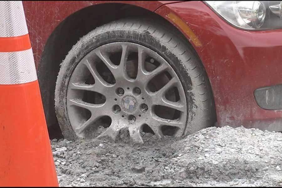 Και συγκεκριμένα στο συνεργείο που έκανε τις εργασίες επιδιόρθωσης του οδοστρώματος, καθώς όπως είπε «δεν υπήρχε καθόλου σήμανση στο συγκεκριμένο σημείο, όταν πάρκαρα το αυτοκίνητο, που να προειδοποιεί πως το τσιμέντο είναι φρέσκο».