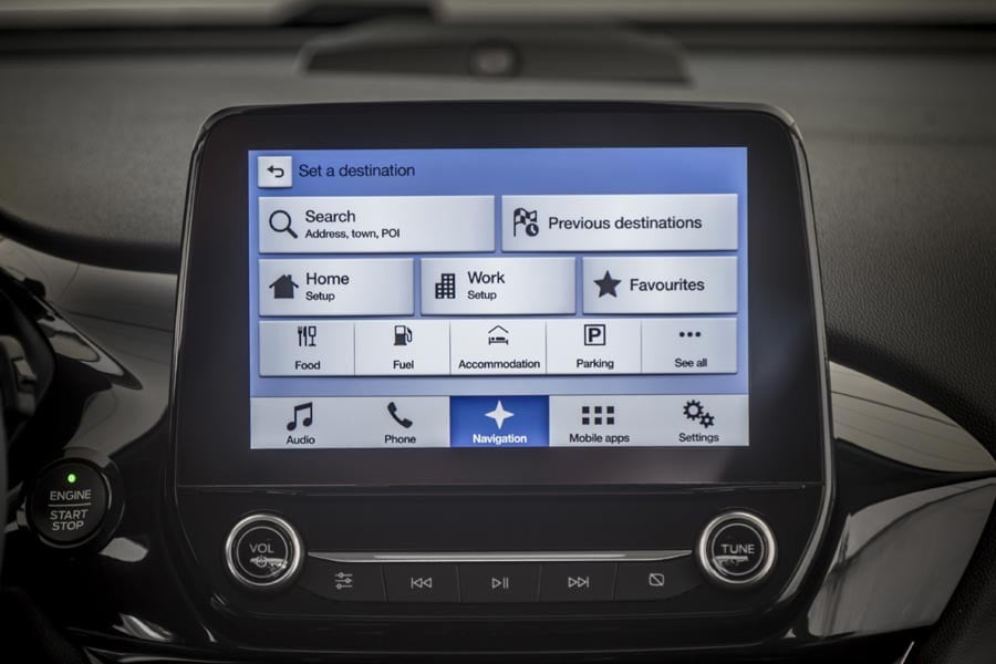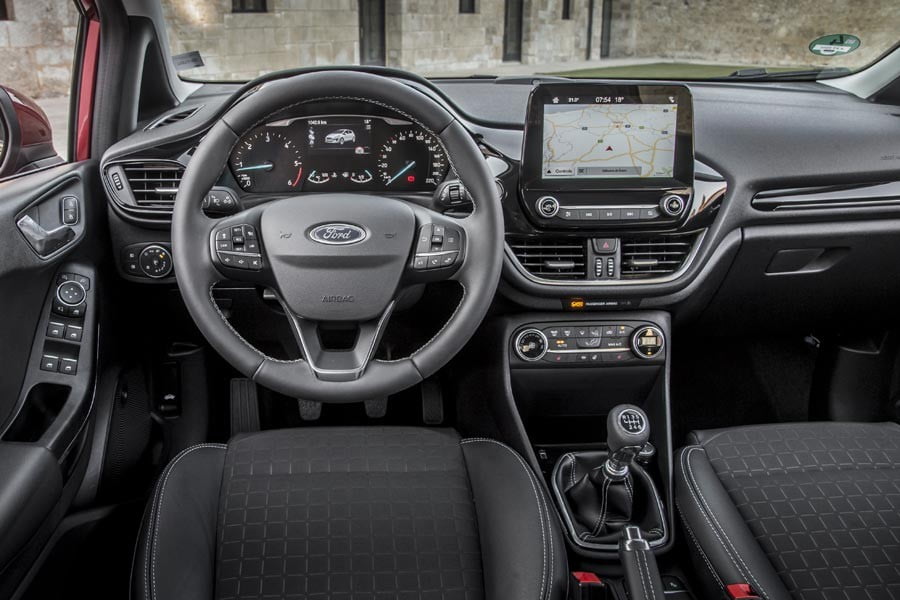 J.S.: Το προηγούμενο Fiesta είναι αλήθεια ότι είχε μείνει λίγο πίσω σχεδιαστικά στο εσωτερικό του. Στο νέο κάναμε ένα πολύ μεγάλο βήμα προς τα εμπρός. Θα λέγαμε ότι είναι μια μικρή επανάσταση. Το πρώτο στοιχείο που προσέξαμε είναι η κεντρική οθόνη αφής. Να είναι ακριβώς στο σωστό σημείο και απόσταση από το τιμόνι, ώστε ο οδηγός να μην χρειάζεται να κάνει μεγάλες κινήσεις για να τη χειριστεί, ενώ παράλληλα να βρίσκεται και μέσα στο οπτικό του πεδίο για να μην παίρνει το βλέμμα του από το δρόμο, πάντα σε συνάφεια και με τους περιορισμούς της νομοθεσίας για τις οθόνης αφής (π.χ. δεν μπορεί να είναι πολύ ψηλά στο ταμπλό). Παράλληλα, φροντίσαμε με τη θέση που την τοποθετήσαμε, να μην έχει και καμία αντανάκλαση, ώστε να είναι πάντα ορατή χωρίς προβλήματα από όλους.