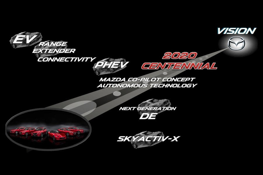 Παράλληλα, σύμφωνα με το νέο πλάνο Zoom-Zoom 2030, ανακοίνωσε ότι θα ξεκινήσει να κάνει δοκιμές αυτόνομων αυτοκινήτων το 2020 και ότι το σύστημα θα είναι στάνταρ σε όλα τα μοντέλα της το 2025. Επίσης, θα αναπτύξει ηλεκτρικά αυτοκίνητα και στοχεύει σε μείωση των επιπέδων CO2 κατά 50% το 2030 (σε σχέση με το 2010) και 90% το 2050.
