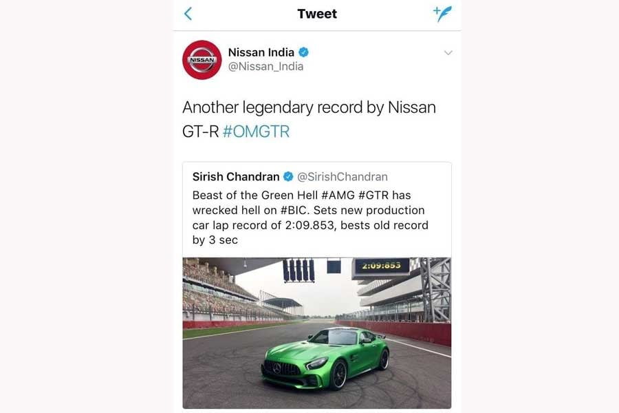Προφανώς και ο άνθρωπος αυτός δεν γνωρίζει και πολλά από αυτοκίνητα. Δεν εξηγείται αλλιώς το γεγονός πως ανέβασε στον λογαριασμό της Nissan Ινδίας είδηση για το ρεκόρ της Mercedes-AMG GT R, το οποίο έγινε στην πίστα Buddh International Circuit στο Δελχί της Ινδίας.