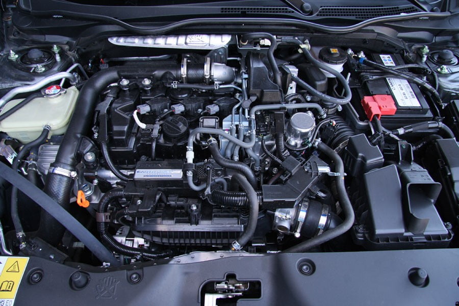 Ο ολοκαίνουργιος κινητήρας 1.0 λτ. VTEC TURBO με ισχύ 129 ίππων στις 5.500 σ.α.λ και 200 Nm ροπής από τις 1.700 σ.α.λ. επιταχύνει το 5θυρο Civic των 4,5 μέτρων μήκους και βάρους από 1.275 κιλά στα 0-100 χλμ./ώρα σε 10,8 δευτερόλεπτα και η τελική ταχύτητα φτάνει τα 203 χλμ./ώρα. Το 3κύλινδρο αυτό μηχανικό σύνολο διαθέτει αρκετά καλή ποιότητα λειτουργίας με ανεπαίσθητους κραδασμούς και λιγοστό θόρυβο, ενώ διακρίνεται και για το τράβηγμά του από τις χαμηλές στροφές. Επίσης, η πραγματική του κατανάλωση του κυμαίνεται στα 7,5 λτ./100 χλμ. και με 110 γρ./χλμ. εκπομπές CO2 πληρώνει 107,8 ευρώ τέλη κυκλοφορίας.