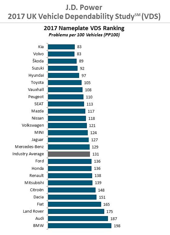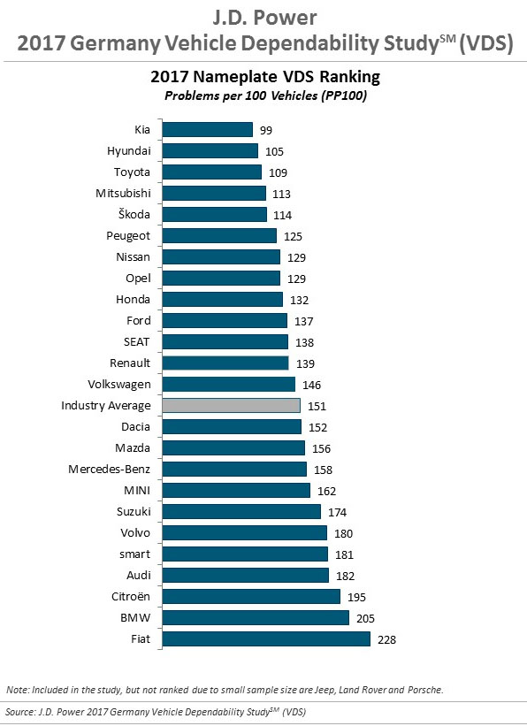 Η J.D. Power η οποία είναι από τις μεγαλύτερες εταιρείες παγκοσμίως που διεξάγει έρευνες ικανοποίησης πελάτη, ανακοίνωσε τα νέα αποτελέσματα σχετικά με την ικανοποίηση πελατών αυτοκινήτων που διεξάχθηκαν στη Γερμανία και στη Μ. Βρετανία. Φέτος ρωτήθηκαν online 14.000 κάτοχοι αυτοκινήτων στη Γερμανία και 12.000 στη Μ. Βρετανία, μοντέλων 2014-2016, ενώ η έρευνα έγινε από τον Φεβρουάριο έως τον Απρίλιο του 2017.