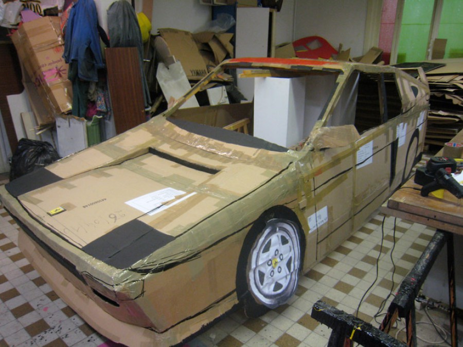 Τα χαρτοκιβώτια που μπορείτε να βρείτε σε αφθονία και χωρίς κόστος στα super markets εκτός από μια μετακόμιση μπορούν ακόμα να χρησιμοποιηθούν ακόμα και για να κατασκευάσετε τη ρεπλίκα ενός αυτοκινήτου! Έτσι λοιπόν και ο Γάλλος «καλλιτέχνης» Bendetto Bufalino, χρησιμοποίησε χαρτοκιβώτια, αλουμινόχαρτο, κόλα και χρώμα και δημιούργησε τη ρεπλίκα μιας Ferrari Testarossa, η οποία φοριέται σαν κοστούμι πάνω από ένα Aixam. Δείτε τις φωτογραφίες και θα καταλάβετε τι εννοούμε…