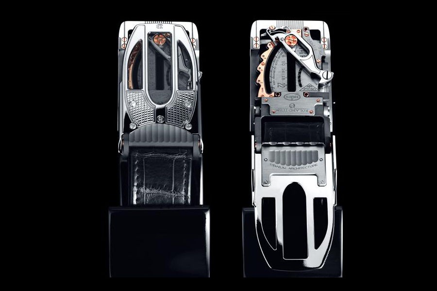 Για όσους αναζητούν ένα πολύ ξεχωριστό δώρο για τις μέρες των εορτών, η Bugatti δίνει την λύση μέσω της πολύ ξεχωριστής αυτής ζώνης (πόρπης πιο συγκεκριμένα), για εκείνους που τους «περισσεύουν» 60.000 ευρώ… Για την κατασκευή των 44 συνολικά αυτών ζωνών που θα διατεθούν, την παραγωγή τους έχει αναλάβει ο Roland Iten, ο οποίος εξειδικεύεται σε πατενταρισμένους υπερπολυτελής μηχανισμούς ρολογιών, με έδρα τη Γενεύη.