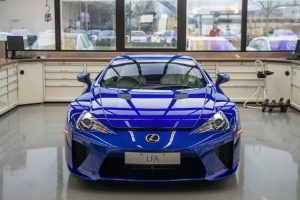 Κάτι ανάλογο ισχύει και για το εικονιζόμενο μπλε Lexus LFA, το οποίο προέρχεται από τη Μεγάλη Βρετανία, έχει διανύσει 6.599 μίλα (10.600 χλμ.) και πραγματοποιεί το service των 3 ετών όπως απαιτείται από τον κατασκευαστή. Το μόνο πράγμα στο service που δεν διαφέρει από ενός "κοινού" αυτοκινήτου είναι η αλλαγή των λαδιών, ωστόσο οι υπόλοιπες εργασίες απαιτούν ειδικές γνώσεις και εργαλεία, αφού πολλά μηχανικά τμήματα της ανάρτησης και του συστήματος διεύθυνσης αφαιρούνται για έλεγχο. Για παράδειγμα ο έλεγχος των φρένων γίνεται με ένα μηχάνημα με ακτίνες Χ, για να διαπιστωθεί αν υπάρχουν τυχόν ρωγμές στους δίσκους ή στα τακάκια. Και αφού όλες οι εργασίες συντήρησης έχουν γίνει, το αυτοκίνητο τίθεται σε λειτουργία μέχρι να ζεσταθεί και οδηγείται σε πόλη και αυτοκινητόδρομο για να επιβεβαιωθεί ότι όλα λειτουργούν στην εντέλεια.