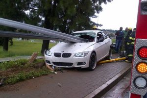 Απίστευτα τυχερός στάθηκε ένας οδηγός στο Γιοχάνεσμπουργκ της Νότιας Αφρικής, ο οποίος σίγουρα είδε την ζωή του ή μάλλον το προστατευτικό κιγκλίδωμα να περνάει μπροστά από τα μάτια του και ξυστά από το σώμα του. Σύμφωνα με την αναφορά της τοπικής Αστυνομίας, ο οδηγός της BMW 335i Cabrio έχασε τον έλεγχο του αυτοκινήτου, αφού πάτησε έντονα το δεξί πεντάλ στο βρεγμένο οδόστρωμα και συγκρούστηκε με το πίσω μέρος του αυτοκινήτου με το προστατευτικό κιγκλίδωμα, το οποίο διαπέρασε το αυτοκίνητο.