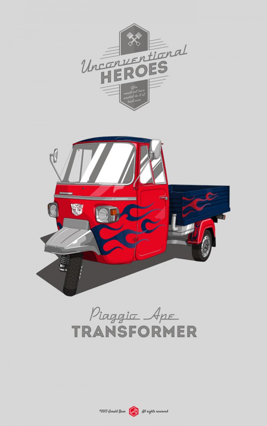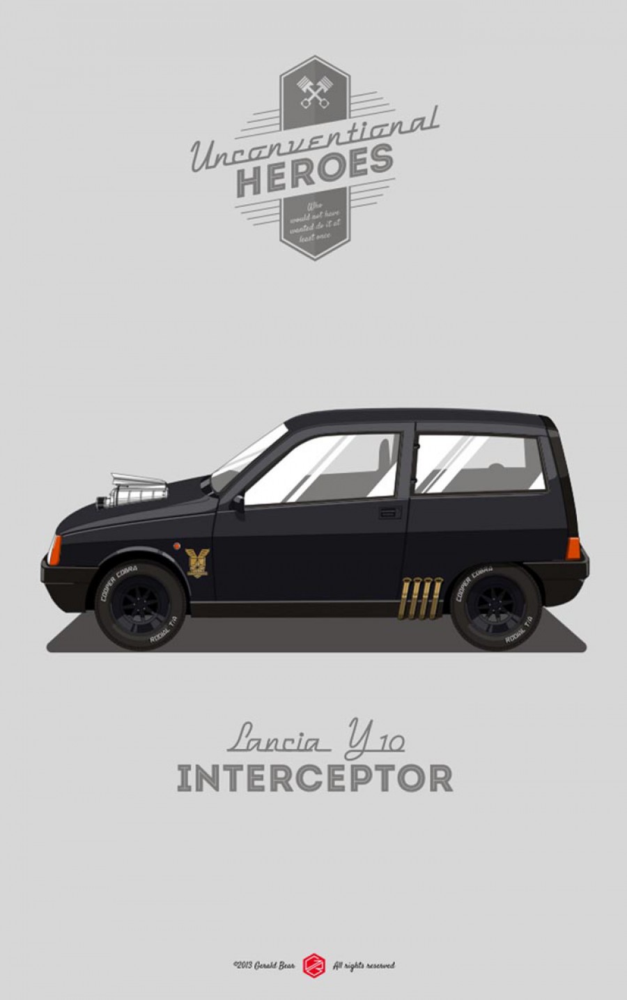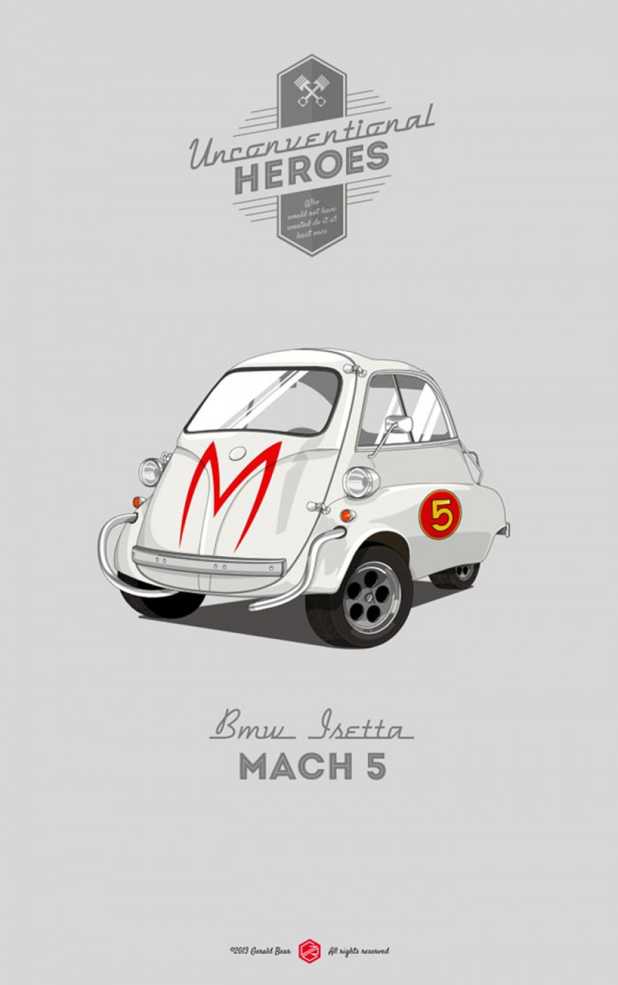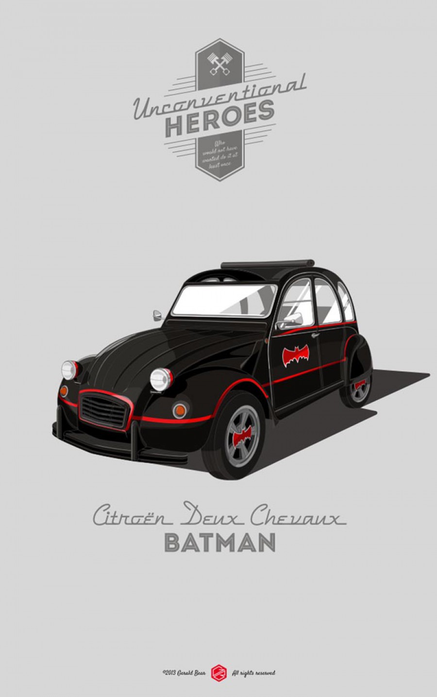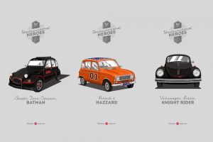 Με τον τίτλο «Unconventional Heroes» ο Μιλανέζος σχεδιαστής Gerald Bear, δημιουργεί μοναδικά poster ταπεινών αυτοκινήτων, που παίρνουν τη θέση των πιο γνωστών τετράτροχων πρωταγωνιστών του κινηματογράφου. Πώς θα σας φαινόταν λοιπόν εάν ο περίφημος General Lee των Dukes δεν ήταν μια Dodge Charger αλλά ένα Renault 4, ή ακόμη εάν ο Μπάτμαν κυνηγούσε τους κακούς της Gotham City με ένα Citroen 2CV! Δείτε τα σκίτσα με την απίστευτη δουλειά του Gerald Bear.