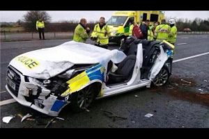 Τέσσερα συνολικά άτομα που ενεπλάκησαν σε σφοδρή σύγκρουση κατάφεραν και γλίτωσαν με μικρούς τραυματισμούς ύστερα από την πρόσκρουση δύο Audi. Το εικονιζόμενο περιπολικό Audi A4 βρισκόταν σταθμευμένο σε αυτοκινητόδρομο κοντά στο Wiltshire της Μ. Βρετανίας με δύο αστυνομικούς μέσα και από πίσω του έπεσε με μεγάλη ορμή ένα Audi A3.