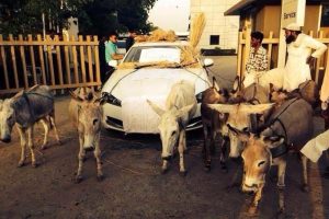 Ο δυσαρεστημένος κάτοχος μιας Jaguar XF στην Ινδία, ο Raul Thakar εξέφρασε με ένα πρωτότυπο τρόπο την αγανάκτησή του για τα πολλά μηχανικά προβλήματα που έχει παρουσιάζει το πολυτελές Βρετανικό αυτοκίνητο. Παράλληλα, διαμαρτύρεται και για το τοπικό συνεργείο που δεν μπορεί να του επιδιορθώσει τις βλάβες και έτσι έδεσε στο αυτοκίνητο μερικά γαϊδούρια για να το τραβήξουν, ενώ έβαλε και σανό στο αμάξωμα για να τα ταΐσει.