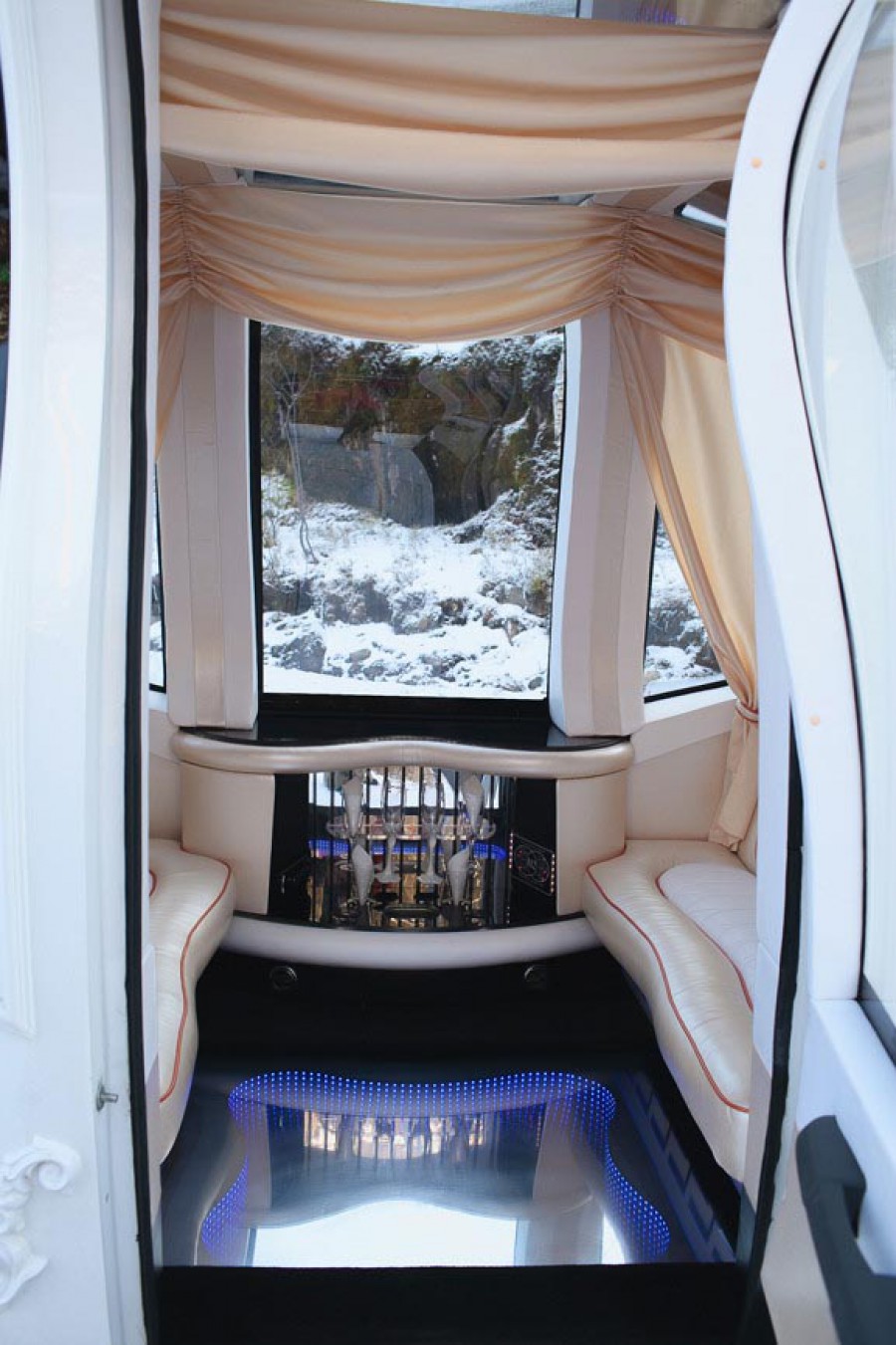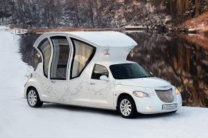 Το νυφικό αυτοκίνητο που θα δείτε στις φωτογραφίες και στο βίντεο ξεφεύγει από οτιδήποτε έχουμε δει, αφού ρώσικη εταιρεία που ασχολείται με διασκευές αυτοκινήτων, μετέτρεψε ένα Chrysler PT-Cruiser σε μια σύγχρονη νυφική άμαξα. Το αποτέλεσμα είναι εντυπωσιακό αλλά όχι απαραίτητα κομψό και χαρακτηρίζεται από την ψηλή καμπίνα, τα φανάρια στις άκρες της οροφής και τη γιρλάντα. Παράλληλα, στο εσωτερικό υπάρχουν δύο αναπαυτικοί δερμάτινοι καναπέδες, καθρέπτες, μπλε LED φωτισμός, τραπέζι για τις σαμπάνιες κ.α.