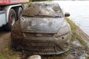 Ο οδηγός ενός Ford Focus RS Mk II έχασε τον έλεγχο και αν και έπεσε στα μαλακά, κατέστρεψε το σπορ μοντέλο της Ford. Το αυτοκίνητο κατέληξε να κάνει βουτιά σε λιμνοθάλασσα, με τους επιβάτες του –ευτυχώς- να βγαίνουν σώοι και αβλαβείς…αλλά λερωμένοι όχι από το φόβο τους, αλλά από τη λάσπη. Μην μπερδεύεστε από την μαύρη ματ απόχρωση του αυτοκινήτου, δεν πρόκειται για τη συλλεκτική έκδοση Focus RS 500.