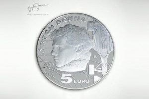 Για τη μνήμη της 20ης επετείου από τον θάνατο του αείμνηστου οδηγού Formula 1, Ayrton Senna, τη «μαύρη» Πρωτομαγιά του 1994, κυκλοφόρησε συλλεκτικό ασημένιο νόμισμα των 5 ευρώ σε 8.000 κομμάτια, το οποίο πωλείται έναντι του ποσού των 50 ευρώ. Τα ειδικής κοπής αυτά κέρματα απεικονίζουν τον Senna και δίπλα την F1 Williams FW16, μέσα στην οποία άφησε την τελευταία του πνοή.